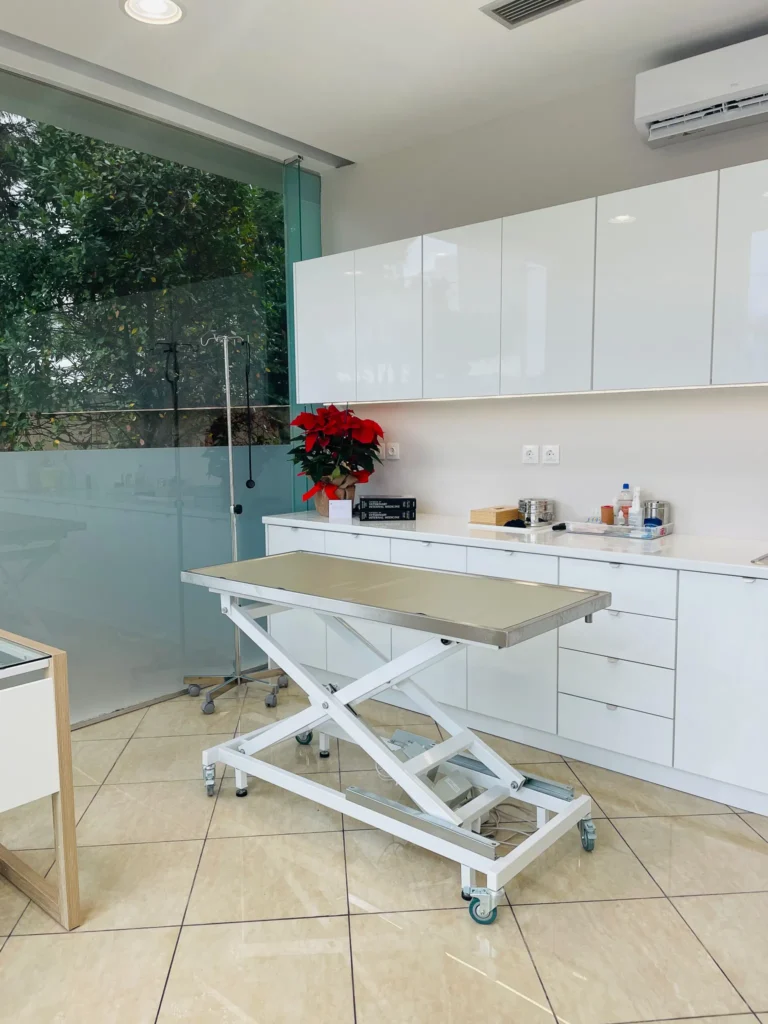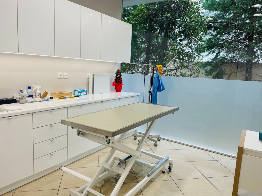 άρτια εξοπλισμένος με μηχανήματα τελευταίας τεχνολογίας για την ολοκληρωμένη εξέταση του κατοικιδίου, σε ένα ειδικά διαμορφωμένο και φιλόξενο περιβάλλον.